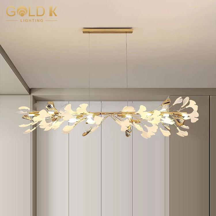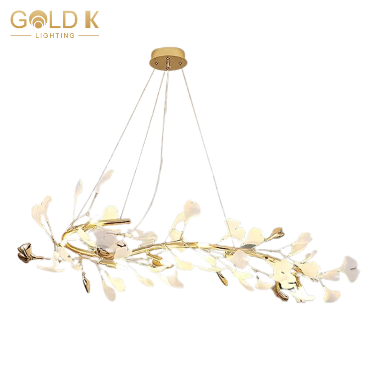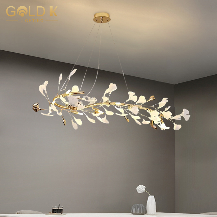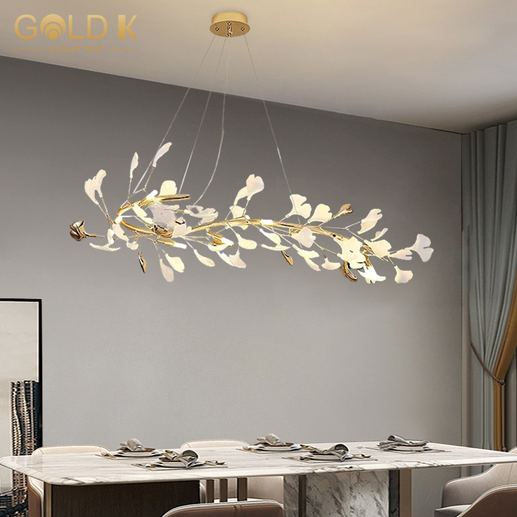 يعكس مفهوم تصميم هذه الثريا السعي الحديث لموقف طبيعي وبسيط للحياة. تصميم شكل زهرة بيضاء وذهبية ، مع خصائص طازجة ، أنيقة ، نبيلة. هذا التصميم يجعل الثريا معروفة للغاية وفريدة من نوعها. سواء كانت غرفة المعيشة أو غرفة الطعام أو إضاءة الفندق ، فهي خيار جيد.