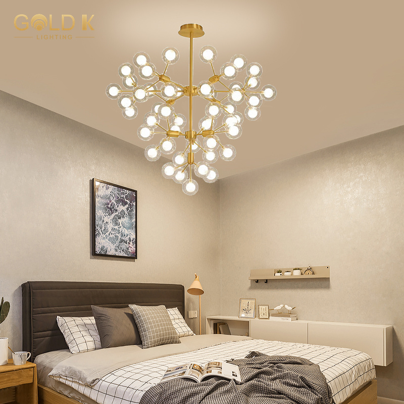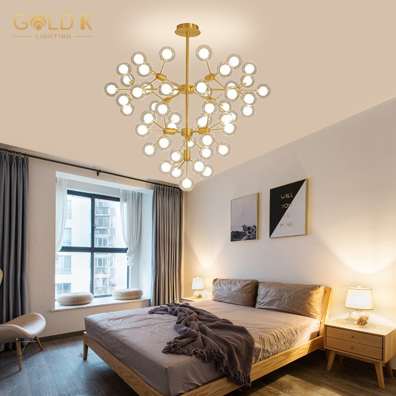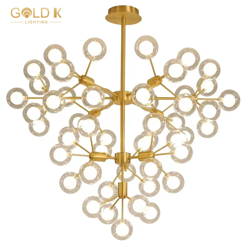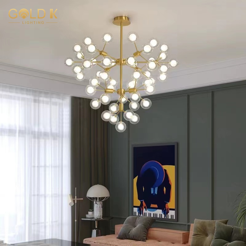تتكون هذه الثريا من العديد من المصابيح المستديرة. مادة عمود المصباح هي الحديد المعدني ، وذلك باستخدام عملية طلاء الذهب. ثم يقوم العمال بتجميع وحام كل لمبة معًا لإنشاء شكل شجرة فريد. يمكنك أيضًا اختيار حجم الثريا وفقًا لمنطقة منزلك حتى لا تكون مشرقة جدًا أو مظلمة جدًا.