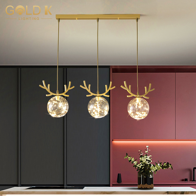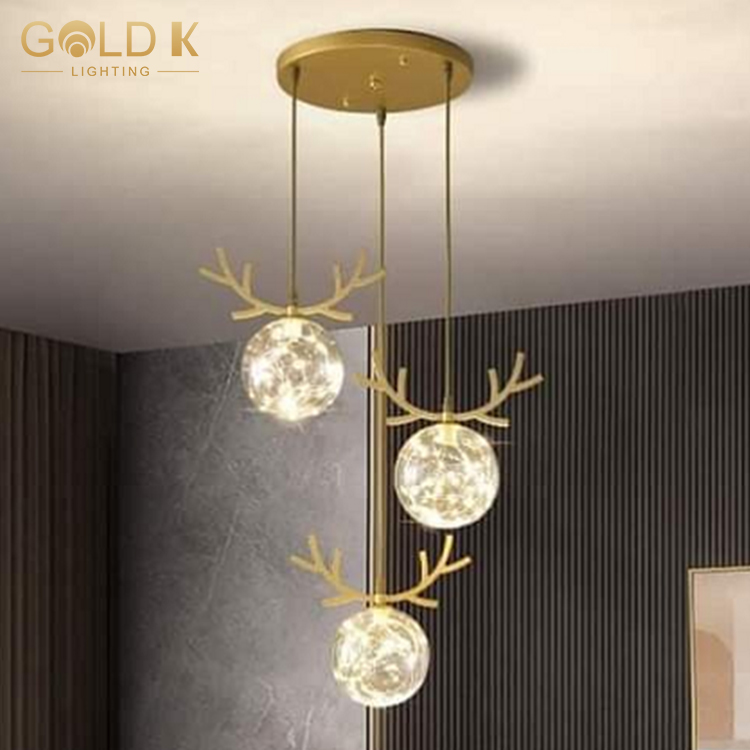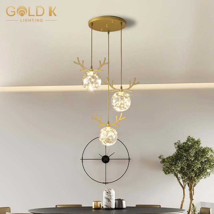 والغرض من هذا ثريا قرن الوعل هو أساسا كما الإضاءة والديكور. بادئ ذي بدء ، يتكون من ثلاثة كرات زجاجية شفافة. هذا التصميم فني للغاية ويجعل الثريا تبدو فريدة وجميلة للغاية. ثانياً ، فإن قرون الثريا الذهبية هي أيضًا لافتة للغاية ، مما يضيف شعورًا بالغموض والرومانسية إلى الثريا. أخيرًا ، تأثير الإضاءة لهذا الثريا ممتاز أيضًا. يمكن أن تضيء المساحة المحيطة وتوفير ضوء كافٍ ، مما يسمح للناس بالعيش والعمل في بيئة مريحة.