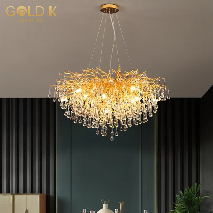 تصميم هذه الثريا مستوحى من الأشجار الطبيعية ، وتقدم قاعدة المصباح الذهبي على شكل فرع تأثيرًا بصريًا رائعًا. هذا مصباح قلادة على شكل شجرة مصنوع من مواد عالية الجودة ، وقاعدة المصباح مصنوعة من الألومنيوم المعدني ، الذي تم نحته بعناية لمنحه مظهرًا قويًا وقويًا. الثريا البلورية مصنوعة من بلورة شفافة ، وهي واضحة واضحة وتبدو مبهرة بشكل خاص تحت الضوء. هذه المواد عالية الجودة تجعل هذه الثريا هذه ليست وظيفة إضاءة عملية فحسب ، بل تعمل أيضًا على عمل فني يمكن أن يضيف مزاجًا نبيلًا وأنيقًا إلى الفضاء.