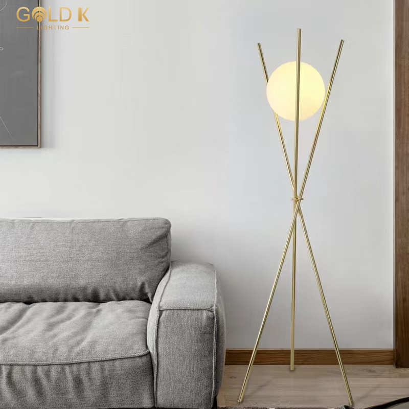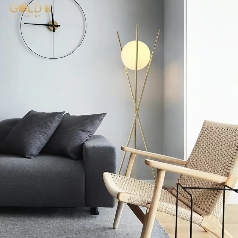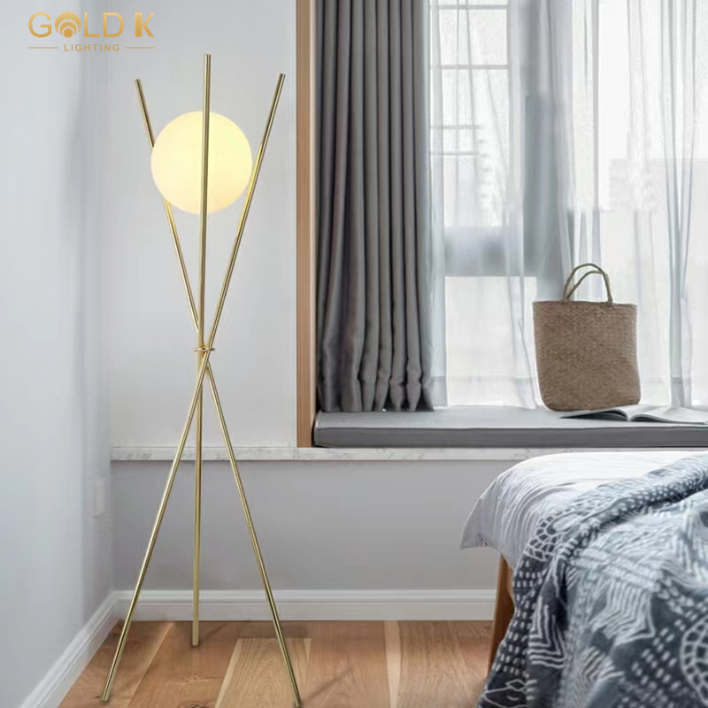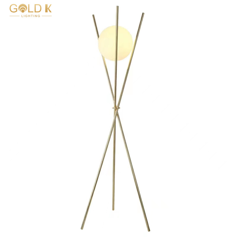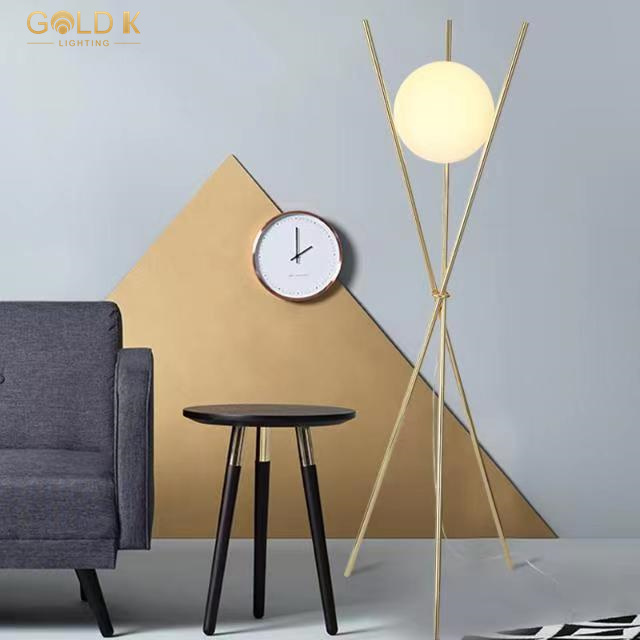 يستخدم ظل مصباح الأرض الزجاجي الدائري تصميم كرة زجاجية بيضاء مستديرة ، شفافية عالية ، وضوء ناعم ، وليس مبهرًا. كانت الأعمدة الذهبية الثلاثة مصنوعة من الحديد ومن ثم تذهيب لجعل كلها لامعة. بالنسبة لمصباح أرضية على الطراز الحديث ، فإن مصباح الطابق هذا أنيق وسهل التحرك. إنه خيار جيد للإضاءة الداخلية.