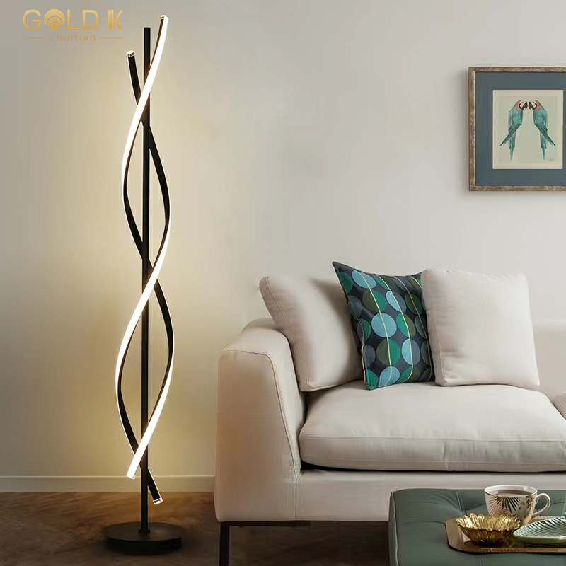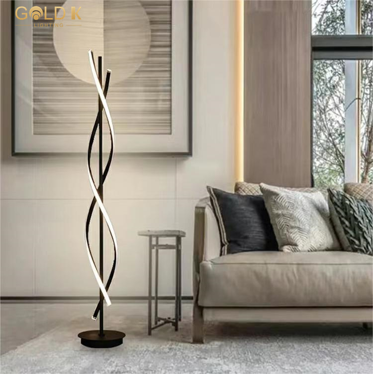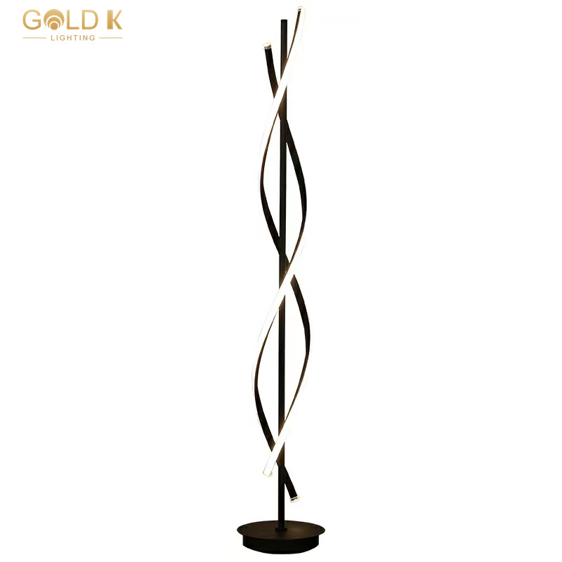 ظل هذا المصباح الحديثة الأرضية هو تصميم متموج مصنوع من الأسود ، ومواده هي المعدن الألومنيوم. مصدر الضوء هو شريط ضوء 58W LED. يتطلب تصنيع القاعدة قطعًا دقيقًا وطحنه لضمان استقرارها ومتانة. يبلغ ارتفاع مصباح الأرضية الأسود هذا 25 سم وارتفاعه 145 سم وهو مناسب لغرفة المعيشة أو غرفة النوم.